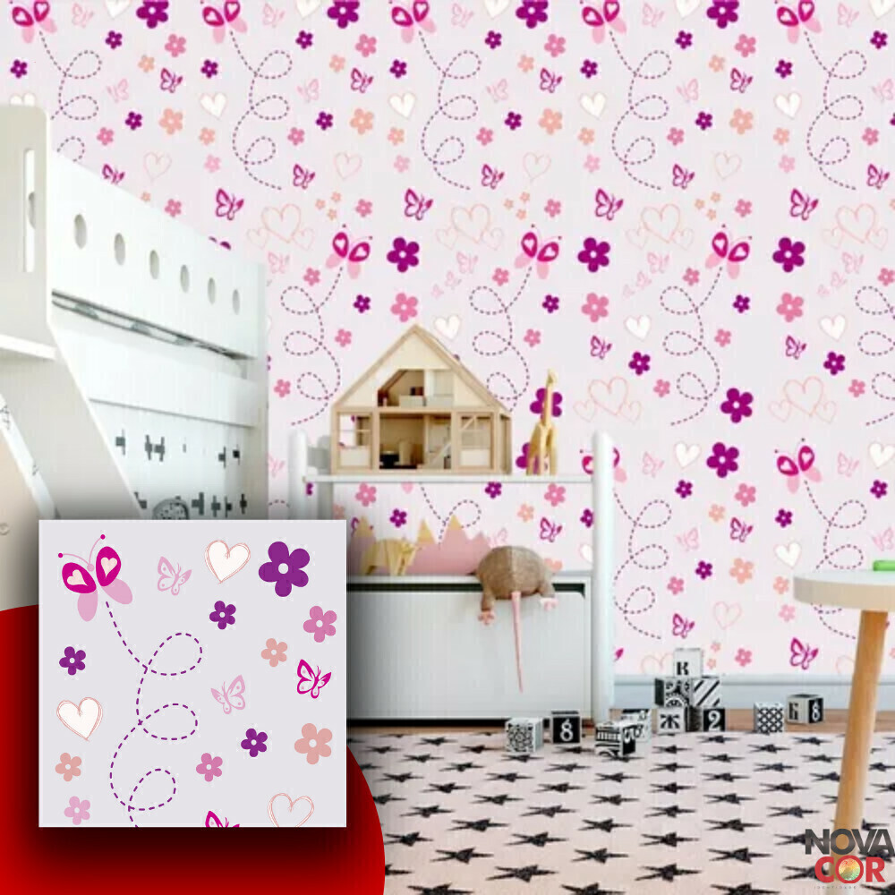 Papel De Parede Infantil Borboleta Flores Delicado Adesivo Autocolante Lavável 3M